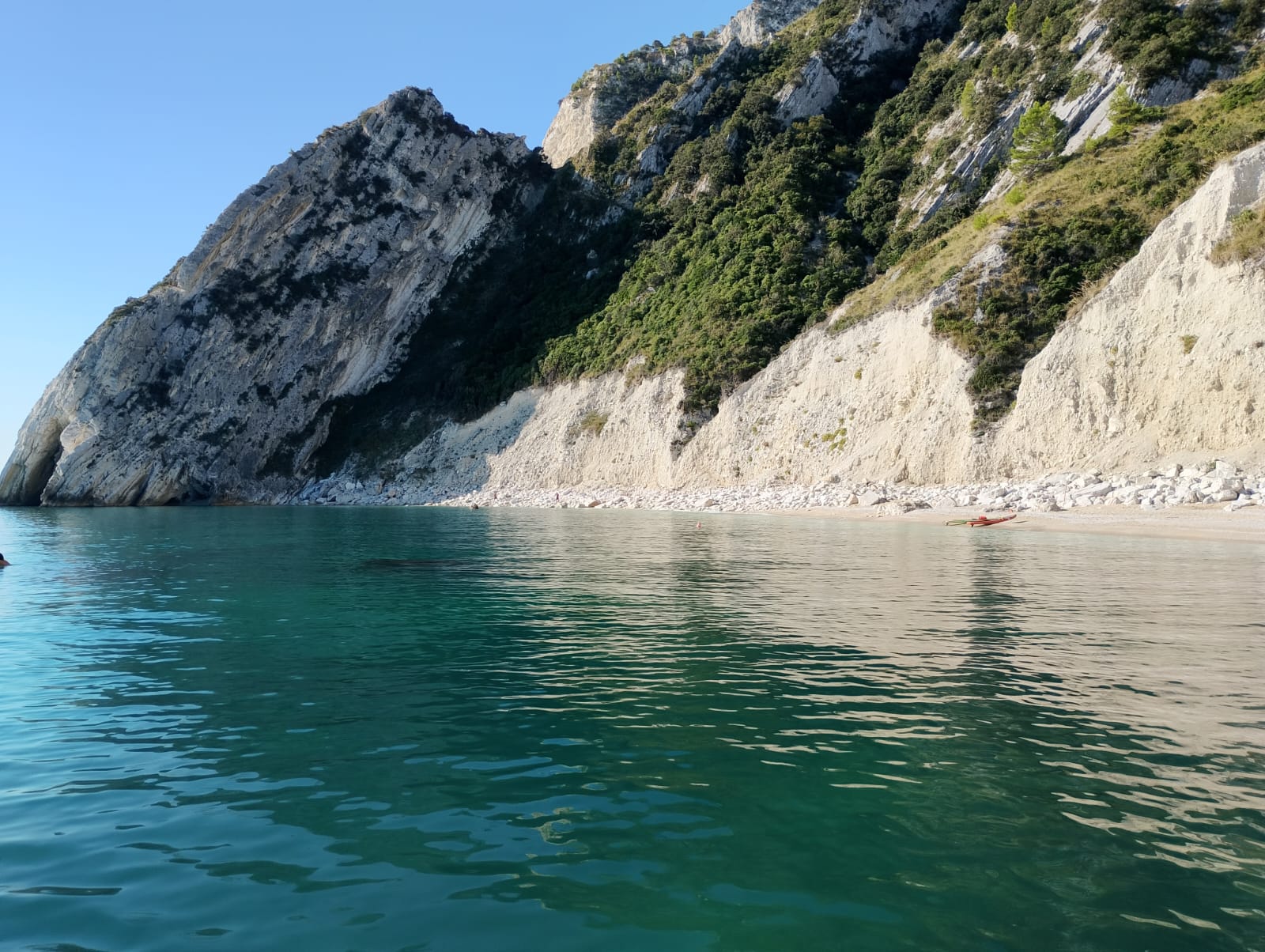 Energia, colori vivi, mare cristallino. Il turno del mattino è pensato per chi ama iniziare la giornata con luce piena, acqua trasparente e un ritmo fresco. La costa si mostra nel suo lato più luminoso: le pareti bianche del Cònero brillano, il mare è calmo e le calette sono ancora silenziose.